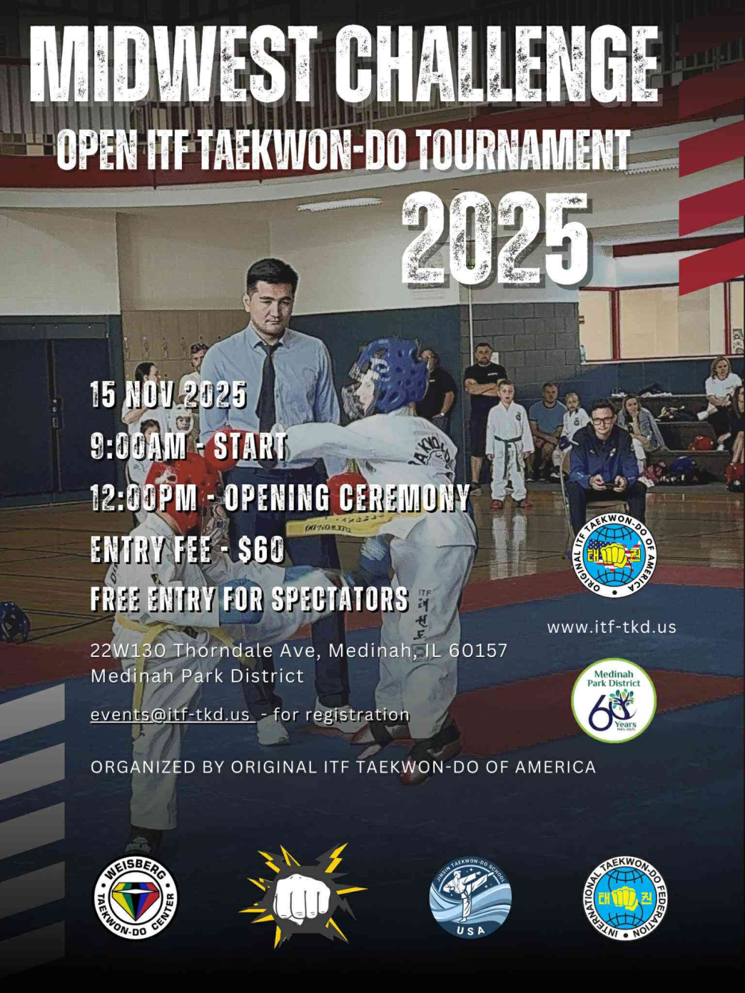 Send completed Tournament registration and registration table to events@itf-tkd.us